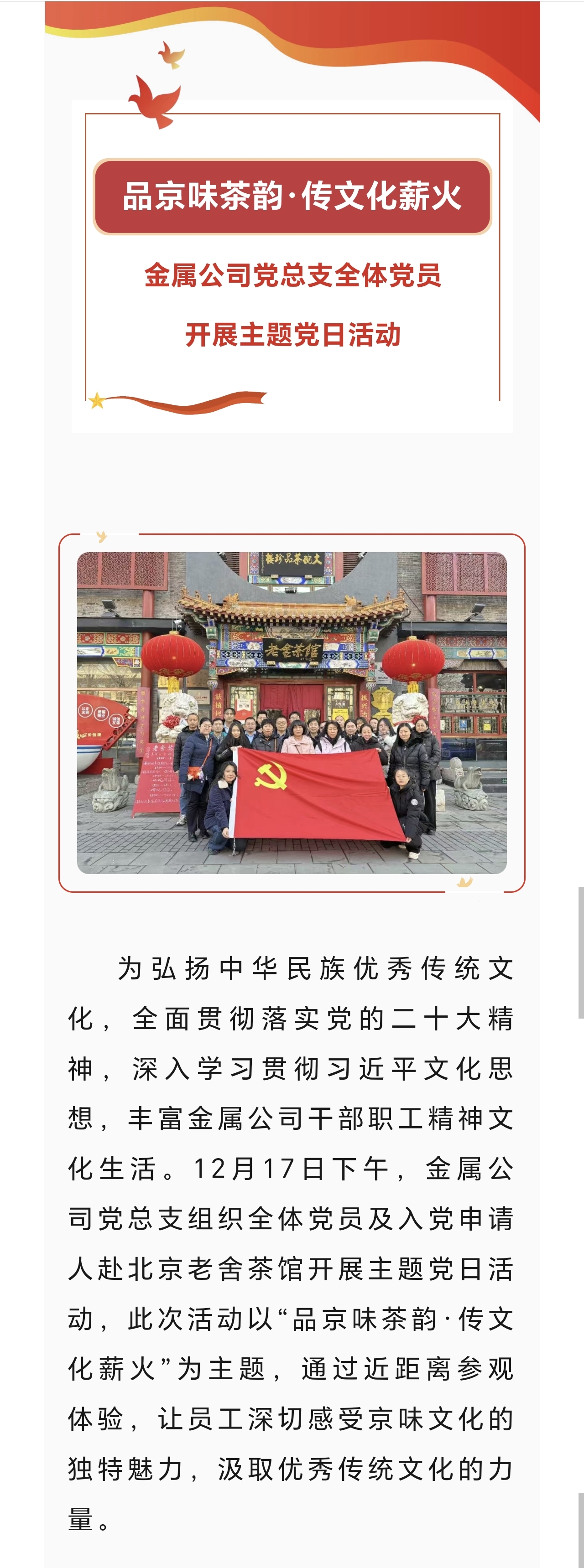 品京味茶韻·傳文化薪火——金屬公司黨總支全體黨員開展主題黨日活動